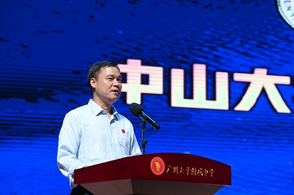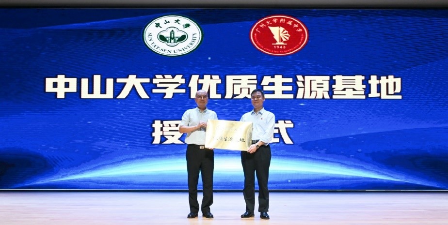 2021年11月17日,中山大学优质生源基地授牌仪式在广州大学附属中学(大学城校区)举行。中山大学招生办公室荐志强主任,中山大学广州地区招生组组长、中山医学院院长助理郭开华教授,中山大学地理科学与规划学院院长薛德升教授、党委岳辉书记,广州大学附属中学欧卫国校长、党委何晓晴书记、王守亮副校长,及广州大学附属中学近1000名学生参加仪式,仪式由广州大学附属中学党委何晓晴书记主持。