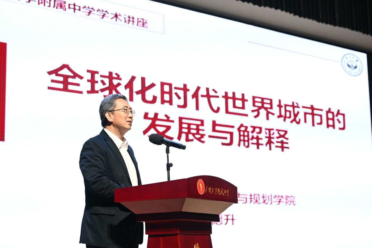 授牌仪式后,按照学校“名师进中学”工作要求,地理科学与规划学院薛德升院长为高二学生做了题为《全球化时代世界城市的发展与解释》的讲座。