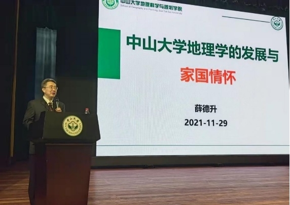 2021年11月29日晚,地理科学与规划学院院长薛德升教授在广州南校园梁銶琚堂为2021级理工实验班新生讲了题为 “中山大学地理学的发展与家国情怀” 的专业导学公开课。本次公开课由学院党委岳辉书记主持,学院党委张春华副书记、马育军副院长、2021级生物科学类(理工实验班)500多名新生参加了公开课。
