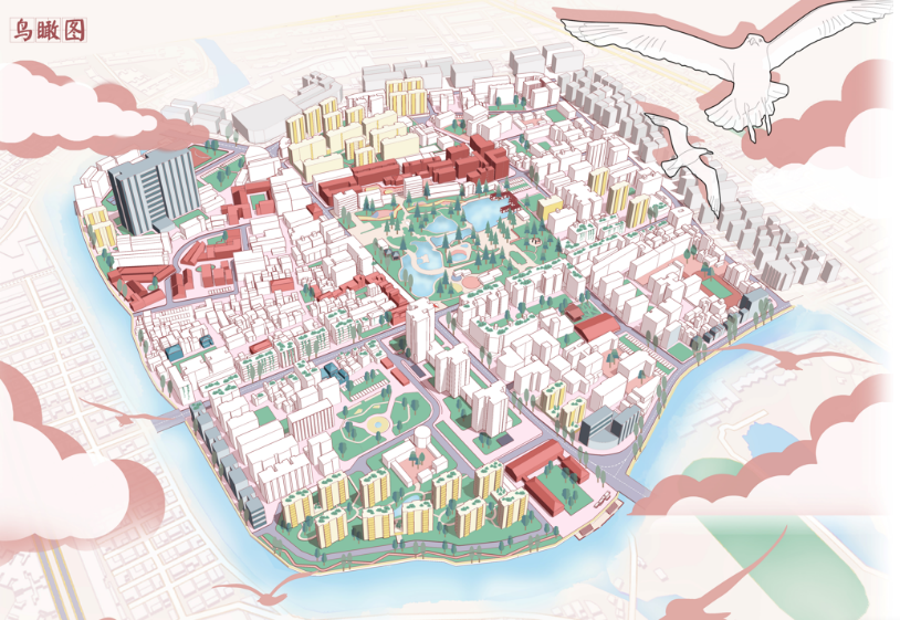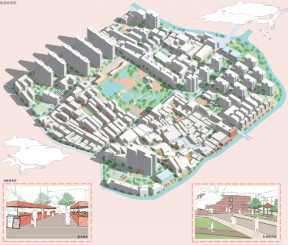 作品简介:旧里寻忆,即保留社区内具有特色的建筑风貌、街巷肌理,凝练社区文化与社区记忆,营造以怀旧为特色的慢生活社区氛围;新巷织诗,即依托社区记忆与文化,营建慢生活社区休闲公共空间,发展怀旧特色休闲商业,打造宜居宜业宜游的休闲老城。该规划方案通过怀旧文化产业轴、休闲慢生活公共空间轴、滨水休闲商业带的结构规划社区整体布局,发展社区特色商业,优化社区居住环境,构建社区公共空间体系,打造宜居宜业宜游的怀旧慢生活街区。