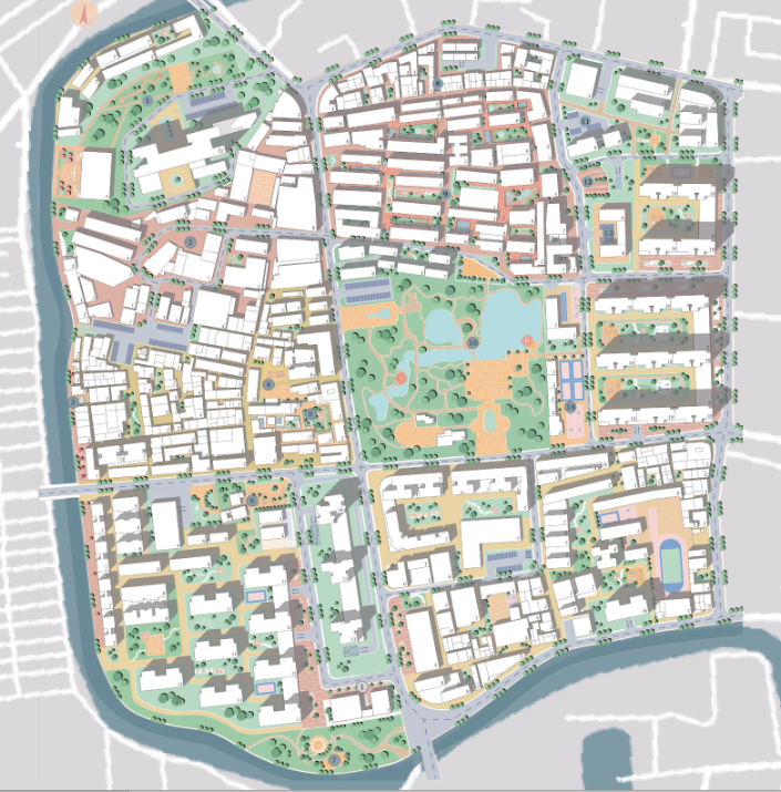 作品简介:本设计在解读现状、上位规划的基础上提出了共享社区的设计理念,整体上从建筑、街道、社区三个由小到大的维度的共享,以打造具有邻里感、复合性、开放性和宜居性的共享社区为目标,对社区进行改造设计:通过在社区内置入共享空间,创建活跃的街道氛围、贯彻落实完善社区参与机制;通过河道维护、次级社区绿地的置入,构建完整的社区蓝绿系统;通过在居民、游客、工作人员、外来居住人口等人群交汇点置入公共空间与共享设施,促进不同人群的交流互动;通过文创产业的连片发展和沿街商业的业态优化,实现社区经济环境的活化。