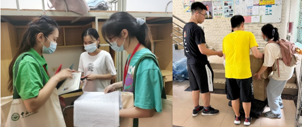 8月27日,为迎接新生顺利入住学校宿舍,学院青年教师专职辅导员谭一洺副教授、朱鹏副教授和钟雯雯老师带领志愿者同学提前到每间宿舍检查设施、水电及卫生情况,及时上报整改新生宿舍存在问题。