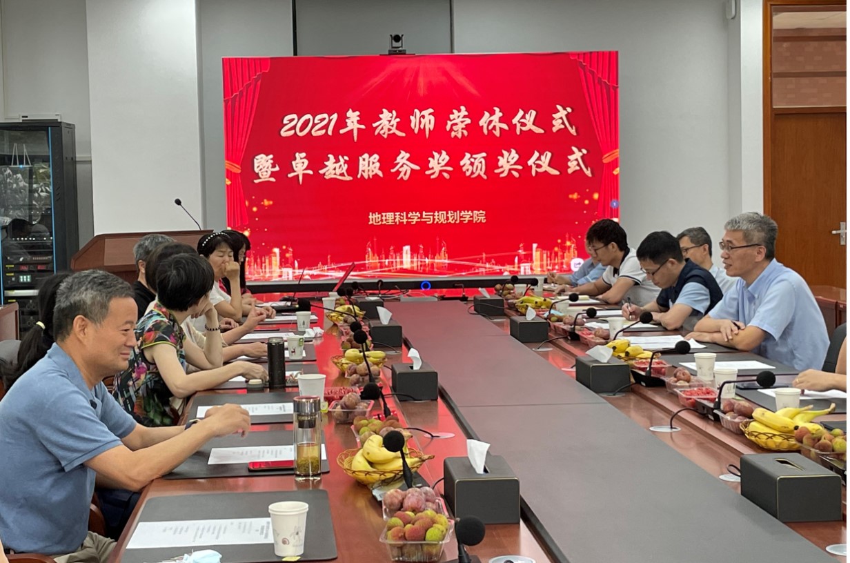 近日,地理科学与规划学院2021年教师荣休仪式暨卓越服务奖颁奖仪式在院楼B210会议室隆重举行,荣休教师吴菁副教授、王静副教授,2021年中山大学卓越服务奖获得者黎坤老师,及学院党委岳辉书记、马育军副院长、各系负责人代表、青年教师代表、学生代表等20多人参加仪式。