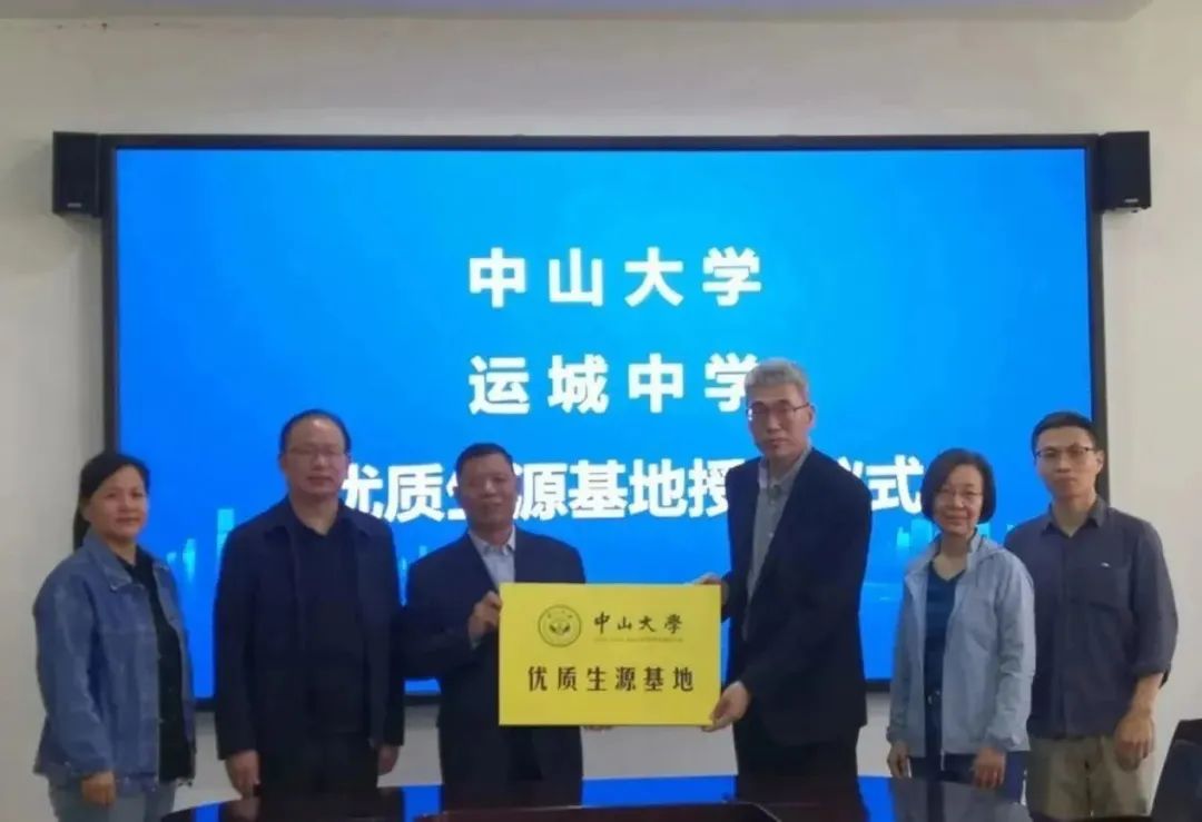 接着招生组与运城中学校长刘智广、副校长戈学峰、教务主任袁晓晶进行了座谈,交流了两校的基本情况及合作意愿,并进行了“中山大学优质生源基地”的授牌仪式。