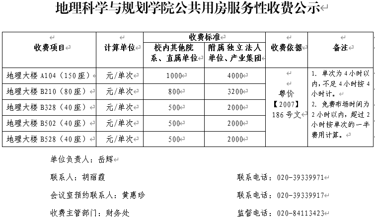 地理科学与规划学院会议室租用管理细则及收费公示