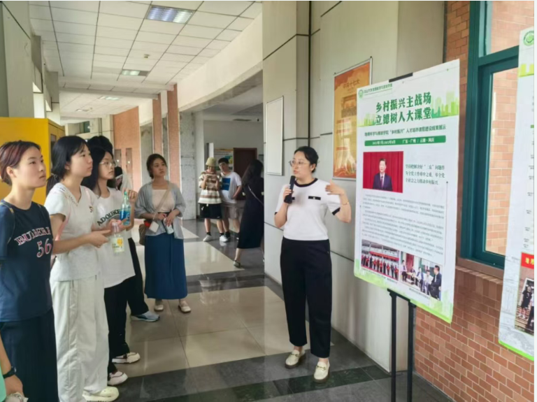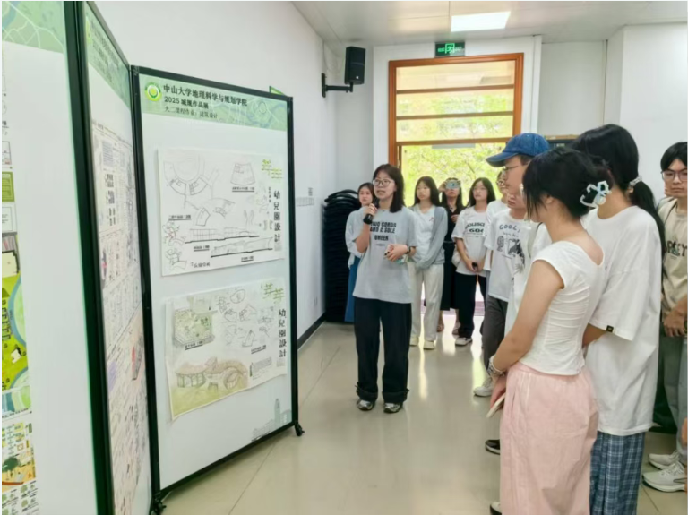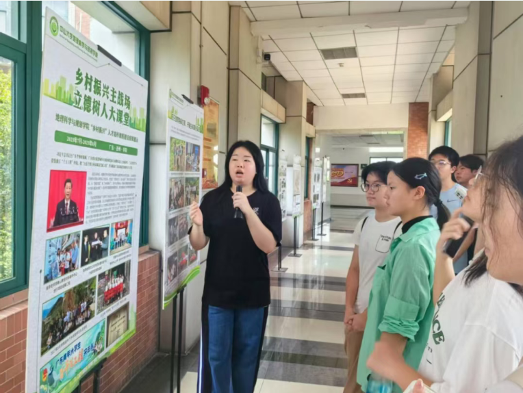 主题展览从多维度厚植家国情怀与专业认同。张春华副书记系统介绍了学院发展历程与人才培养理念;丁健老师生动讲述了彭华教授数十年深耕丹霞地貌研究、推动中国丹霞列入世界自然遗产名录的感人事迹;陈梓烽副教授与何晓桐、贝倩怡两位同学共同展示了城乡规划课程设计作品与建筑模型案例;谭一洺副教授介绍了学院国际地理学联合实习的发展历程;姜帆老师、欧阳慧同学以及郎嵬副教授、黄妍同学则分别分享了学院在连州的乡村振兴实践与凤庆“共同缔造”基层治理案例。一系列展览紧密衔接专业学习与价值引领,生动呈现了地理学的学科广度与社会温度,激励同学们树立专业自信与责任担当。