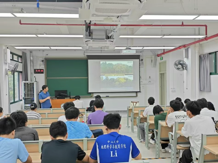 特色展示环节凸显科技赋能与实践价值。院长助理齐志新副教授展示了无人机值守库设备及其在遥感监测、智慧城市等领域的应用;飞鸟团队的傅浩同学则分享了“飞鸟管家・空天地一体化智慧农业管理系统”,生动展现地理技术在智慧农业中的实际成效。在屏幕实时呈现的无人机巡查影像与鲜活的荔枝种植案例中,前沿技术从课堂走向现实,同学们不仅听得入神、看得真切,更点燃了对科技应用与专业实践的浓厚兴趣。