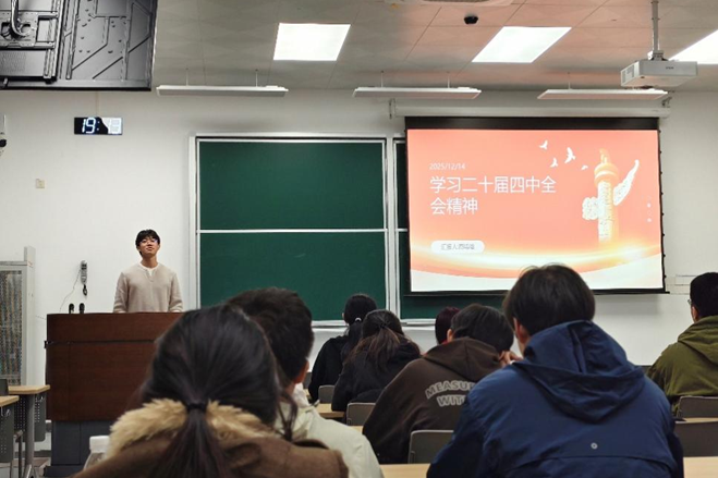 会议首先进行“第一议题”学习,主席团成员高鸣晗带领全体成员深入学习了党的二十届四中全会精神。学习过程中,成员们结合自身学习与工作实践,交流了对新时代青年使命的思考。大家一致认识到,必须将理论学习的成果转化为服务同学的实际行动,在学术科研、校园文化、权益服务等各个领域中主动作为,为学院发展贡献属于学生会的青春智慧与力量。