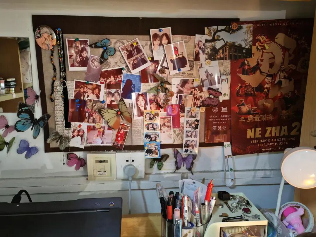 至善园328宿舍不仅把专业融入生活,更用创意和整洁打造了一个兼具实用与美感的美居创意宿舍。四位22级本科同学在保持宿舍整洁明亮的基础上,用巧思打造出一个充满地理印记的“专业生活馆”。值日表让扫地、整理成为习惯,而真正让宿舍鲜活起来的,是那张贴满旅行足迹的中国地图、收藏各地风景的明信片墙,以及用纸袋改造的纸巾盒、旧物自制的收纳盒等环保实践,践行可持续生活。每次回宿舍,就像回到了她们热爱的山川湖海。她们的收纳空间像等高线般层次分明,绿植与串灯点缀其间,整体风格简约清新。在这里,地理不仅是课本上的知识,更是生活中可触摸、可回忆的温暖存在。