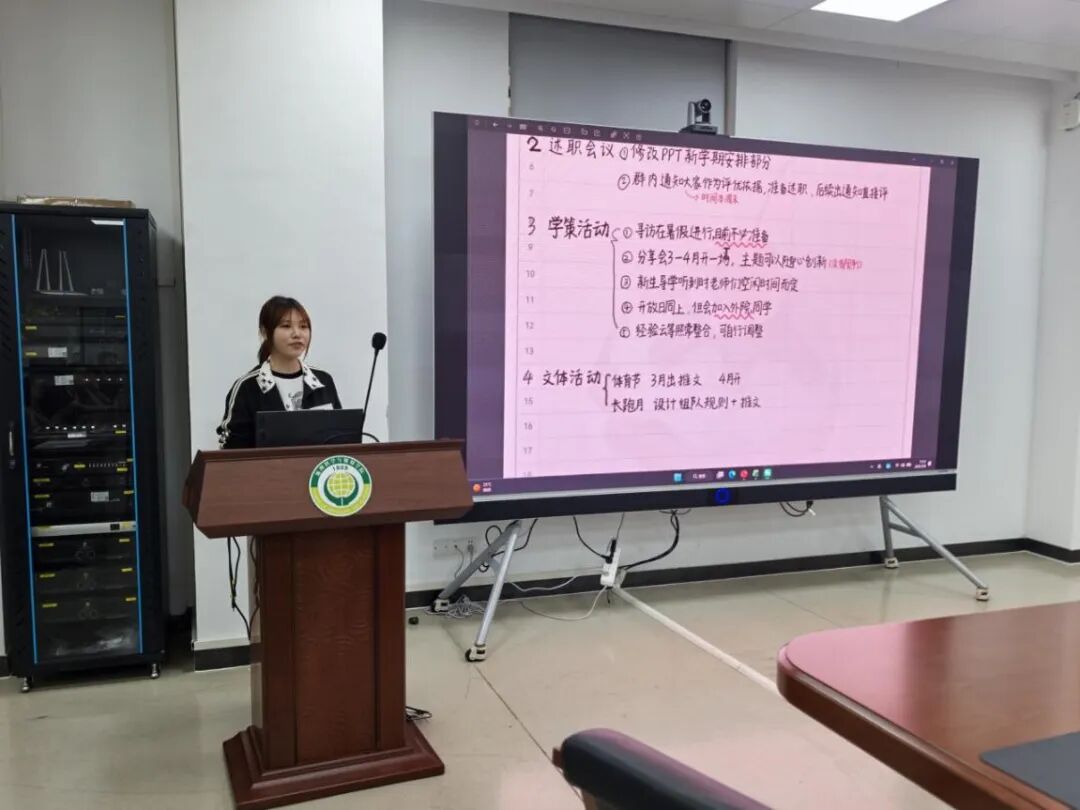 最后,主席团成员高鸣晗带领全体成员研讨春季学期工作,围绕任务细化、职责分工、预案制定等方面集思广益,形成详实可行的工作计划。研讨过程中,成员们结合以往工作经验,提出多项切实可行的建议与创新想法。通过深入交流,大家明确目标、凝聚合力,为新学期各项工作高效推进提供坚实保障。
