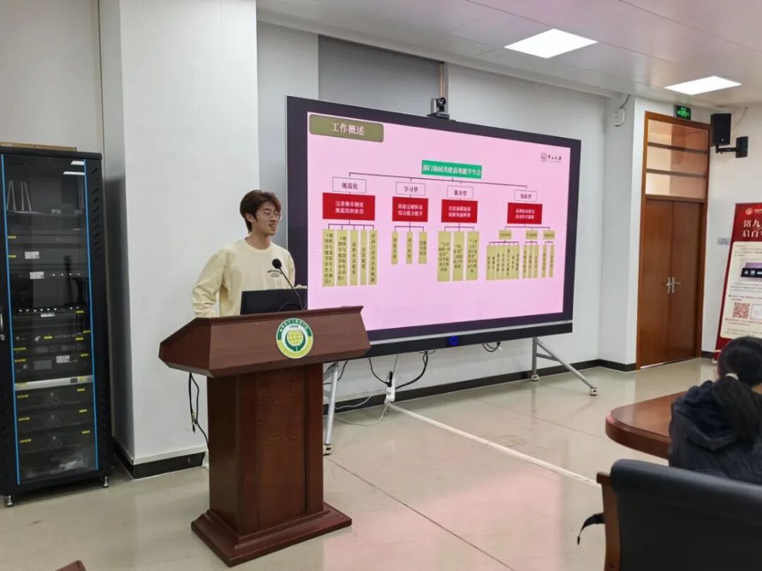 接着,会议进行秋季学期工作总结,主席团成员首先立足规范化、学习型、服务型、创新型四个维度,对秋季学期学生会整体工作进行了全景式回顾,系统梳理了组织建设与活动开展中的亮点成效与薄弱环节。随后,学策部、文体部、宣传部、综合部负责人依次登台,围绕部门职责与工作实践展开深入总结。