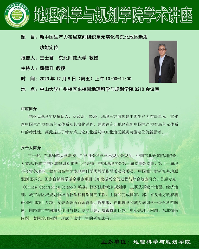 讲座预告 | 新中国生产力布局空间组织单元演化与东北地区新质功能定位